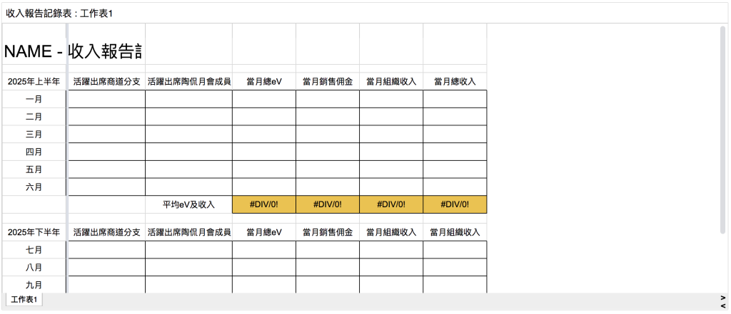 請聯絡直屬領袖以取得文件,打開 Google Doc 並在「共用與滙出」中「建立副本」,每月填上最新資料,於指定時間將報告截圖交給 Cell Leader。